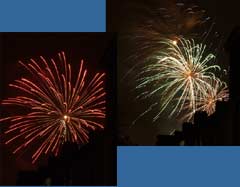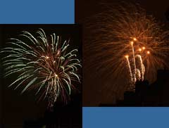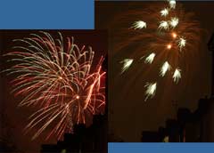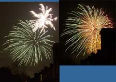Tonight the Easterly wind meant that the fireworks drifted West enough for them to be visible from the much darker back garden.