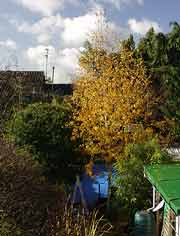 6 November - A remarkable Autumn continued with a warm (18C) and almost cloudless day (It seems that Heathrow airport had its warmest November day on record - 19C). Within a day of taking the garden picture (see above) the Birch tree has shed a lot more of its leaves and we can now see through it, and they continued to fall as I took the photographs.