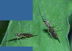Finally, just as the sun passed behind the tree line to cast a shadow over the lower parts of the Ivy, this little Ichneumon fly (probably) perched briefly on a leaf, cleaned its antennae and then flew off again.