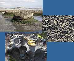 I didn't go fossil hunting but spent time wandering over the foreshore at low tide. The weather stayed dry for most of our time there and the sea stayed flat calm - no chance of the sort of storm pictures I took down in Cornwall this time last year! Click on the images to see larger versions The area is referred to as the Jurassic Coast and most of the fossil hunting goes on where there have been rock falls from the extremely crumbly cliffs. Down on the foreshore there are layers of harder rock with softer shale layers. In some parts these softer, grey layers have been burrowed into by large numbers of American Piddock bi-valves. In the top image the columns are just over 2ft tall. In contrast, the cliffs in the background include the highest point on the South Coast. If you look at the larger version of the image, the pointed portion of cliff at the extreme right is known as the Golden Cap, and is 627 ft high.