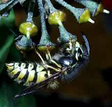 The Ivy was a centre of a lot of insect activity throughout the day. There were more wasps like this one about than over the last few days.