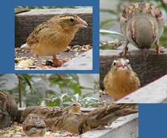 The little finch continues to stay around and feed with the crowd and was either on the table or at the feeder most times I looked out.
