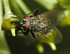 Here, another species of fly with similar equipment also takes advantage of the liquid food supply.