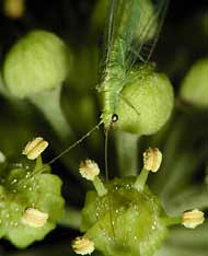 I checked the Ivy tree tonight. Many of the new batch of flowers are sporting anthers now and the aroma is overpowering. However, although it is quite mild outside, and the wind has died down, the only insect I could find on them was this solitary Lacewing heading for a meal. The weekend weather forecast is good. Perhaps the sunshine will encourage more visitors to ensure a good crop of berries this winter.