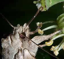 This second image is a close-up of a moth that is the same species as the first one pictured in yesterday's entry. If you look at the enlarged image you will see how the proboscis has hairs on it, something I hadn't seen previously.