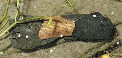 ![]() Also spotted were a couple of Caddis Fly larvae on the move, or at least, their mobile homes of leaves. The larva's front end is just about poking out of the right hand end of this one. You may just make out a bit of a front leg!
