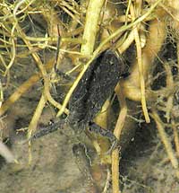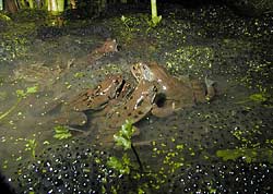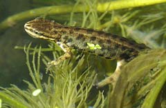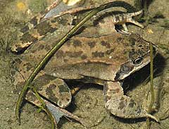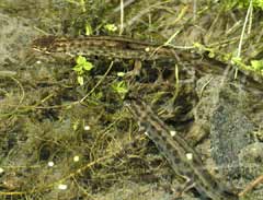 Most of the other frogs are spending their time at the bottom of the pond, like this one which is under only a couple of inches of water. The ones that are deeper look flattened under the pressure of the water. There was no sign of courtship amonst the newts that I watched tonight. ![]()