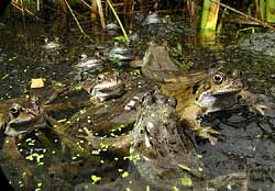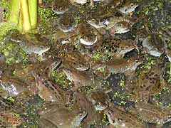 There is even less 'open water' in that part of the pondas the spawn pile up, and the forgs spend most of their time clambering over it.
