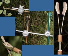 The picture shows it set up to hold a branch on the Birch tree as I tried to take photographs of a couple of the sawfly larvae shown below. The clamp consists of two brass strips, bent at one end to form a jaw which is padded with bits of draught excluder. The strips are soldered into the end of a copper tube, and a small piece of the same tubing can be slid along the strips to open and close the clamp.