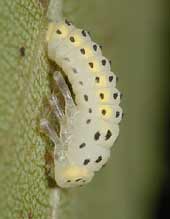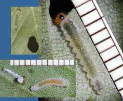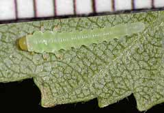 You can see how this one has eaten away all the tissue between the system of veins on the leaf.