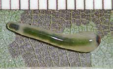 On the other side of the Birch I found this tiny larva, measuring around 7mm in length - not one I can remember seeing here before. I've had a close look at it without removing it from the leaf and I think it has four pairs of prolegs (the legs at the rear of the body) which suggests that it is a caterpillar rather than a sawfly larva.