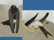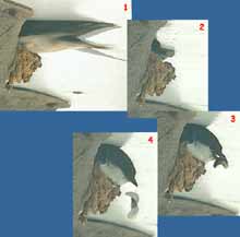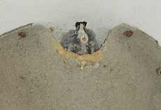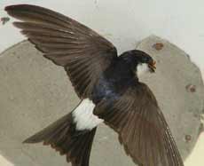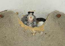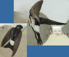 31 August - A dry day with a sunny afternoon to end what has been a very disappointing August. I've been up on the tower again, watching the House Martins. There is still no sign of the chicks front ends, although they reversed up to the entrance a number of times while I was watching. I'm hoping that someone can tell me the approximate age of the chick from the size of the tail feathers.
