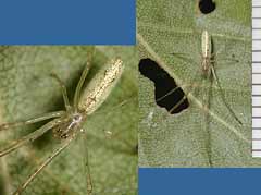 However I did manage to get a picture of this tiny spider, one of three similarly sized individuals on the lower branches of the Birch tree. I think it if a member of the Tetragnathidae, although I cannot match it to any of the spider illustrations I have.