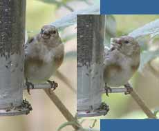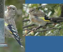 A couple of hours later there was a treat when one of the adults returned, accompanied by a juvenile, the first time I can recall seeing a young Goldfinch in the garden. It was a pity that by the time I got my camera sorted out the adult had left the feeder.