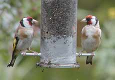 The gloom of the morning was interrupted for a while by this pair of Goldfinches. I was hoping for another glimpse of the youngster, but that hasn't appeared by lunchtime.