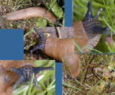 There was an amusing moment when a frog that had been watching the slug's progress couldn't resist an attempt at catching it, tempted, I assume, by the constant movement of the slug's antennae. The image (bottom right) shows the frog just after its futile plunge.