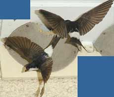 Twice during the times I spent watching, the feeding pattern was interrupted by the presence of a Sparrow Hawk on patrol quite high above the houses. The Martins disappeared completely while it was about.
