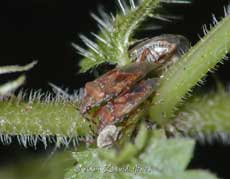 Tucked into several sheltered spots on the Stinging Nettles are groups of Mirid Bugs (I don't know what species).