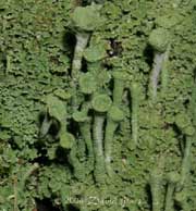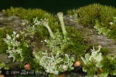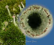 Finally, a close-up of one of the lichen cups, showing the brown spore-producing bodies on the rim.