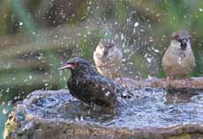 It's amusing to watch as the Sparrows wait their turn and get soaked as they do so.