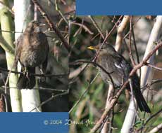This immature Blackbird has been down under the Hawthorn numerous times today, but I was only able to get pictures when it perched in the Birch tree.