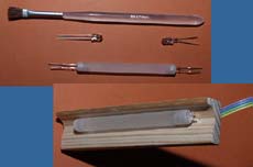 To get around this problem I used a solid plastic handle from a small brush. I cut off both ends and drilled holes to insert an LED at each end. The outside of the tube has been sanded to form a translucent surface. The result gives a diffused white light. The wood was shaped to prevent light spill back towards the camera lens. These LED's are connected to the BT box where I am going to experiment with different ways of controlling them. My initial experiment will be to connect the LED's through light dependent resistors (LDR's). A first try this evening looks promising. This will mean that the light level in the box will increase as the level of daylight increases, and the box will become dark gradually at night. I will position the LDR's outside the BT box, just under the roof so that they are protected from rain and, more importantly, direct sunshine. At some point I must put this info into the technical section of the site.