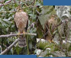 A Sparrowhawk appeared once yesterday, and today I've seen it here twice. These photographs were taken soon after the Long-tailed Tits had left, when the hawk perched in several places as it checked out the garden.