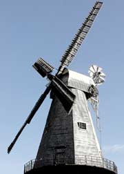 This is a view from the main street just as the sun rose, and shows a windmill, built in 1814 and known as the Union Mill. It stands some 72ft high, including a 3 storey stone tower to lift it above turbulence caused by the surrounding houses.
