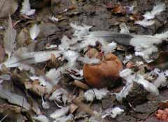 A look over the fence revealed a patch of white feathers with the occasional black banded tail feather under my neighbour's apple tree- a sure sign that a Collared Dove has fallen victim to the hawk.