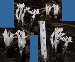One interruption to this work came when I spotted this growing from some rotting wood just behind the Hawthorn. I think it's a Candle-snuff Fungus (Xylaria hypoxylon), a common species on dead wood, although I have not seen it here before. It is also known as Stag's Horn Fungus.