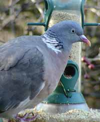 Photographed in the same way, here is one of the Wood Pigeons that come to the garden at the moment. This time last year I had a net around the feeder because the pigeons had become 'too greedy' and were dominating the feeder. We haven't got to that stage yet, but I may have to chance my mind soon. The Collared Doves are far less of a problem, preferring to feed on the bird table and the ground.