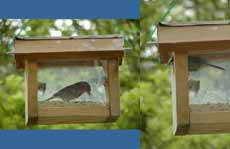 The nest is a very thin layer of twigs which is usually built in rather precarious places near the ends of branches, so this is quite a secure spot. We are trying to decide whether or not one of the House Martin 'boxes' at the front of the house is being used for nesting by a pair of House Sparrows. |