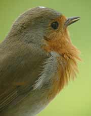 There is a second robin that comes looking for mealworms. I don't thing it's the mate, but there is no aggression between them unless they get very close. Then we see brief displays like this, where he puffs out his chest feathers to produce darker bands when viewed from the front, and tips his head up. Sometimes the display is more pronounced, but the posture isn't held for long. The Blue Tits are still going back and forth to their nest box, but the level of activity suggests they have not got chicks yet.