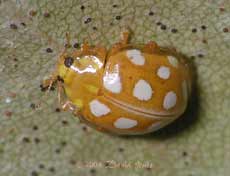 When I got down from the step-ladder I spent some time checking the Birch tree. There wasn't anything new to report on, but the Orange Ladybirds can still be seen the undersides of leaves. I counted twelve this afternoon, including this individual, surrounded by the fungal fruiting bodies (first pictured on 16 October). I could not see any pupae - it looks as though the reproductive cycle is at last over for this year.