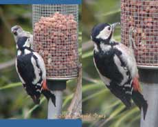 27 October - A cloudy morning has been brightened by another first for the garden. Having spotted the woodpecker in my neighbour's garden on the 19th, this morning I can report the first time I have ever seen one feeding in my garden.