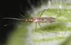 7 September - Another dry day, although this morning started off overcast. I didn't pick up a camera during the day, but tonight I took this one picture of a bug, measuring about 10mm in length on the White Campion. I had gone down the garden to check on the Campion, on which the third flower is now open. I intended to try pollinating the flower using a Red Campion. When I looked closely I saw seven of these bugs active on the plant. I'm afraid the picture is a bit blurred, thanks to my holding out the camera at arm's length! It doesn't appear in my guides, so I need to keep looking.