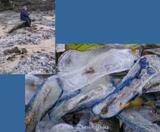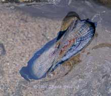 I searched right across the width of the cove but was unable to see any that were still alive. In most cases, all that was left was the colourless, transluscent float and sail, although some still had bright blue traces of the polyps that once hung down below it. Still, it was an amazing sight, and my first ever glimpse of these creatures.