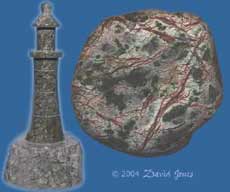 No two days ever seem the same here, although this week we didn't see the sea at its most aggressive. It's always a treat to be here during a south-westerly storm, preferably when the tide is low, exposing the rocks that extend out about half a mile from the point. The top-right image shows the old lifeboat station, exposed to such gales, and which was in use until 1962 when a new station was opened on the sheltered eastern side of the headland. One aspect of the whole of the Lizard peninsular that I enjoy is the great range of rocks to be found here. Every walk on a beach turns up with interesting pebbles with varieties of patterns and colours. Some of the most spectacular are of Serpentine, such as the pebble shown on the right of this image. On of the main souvenirs of a visit to the Lizard is a piece of Serpentine that has been turned by one of the local craftsmen into a lighthouse. This one, bought many years ago, measures just 4 inches - they can be a couple of feet tall, with a light on top.