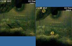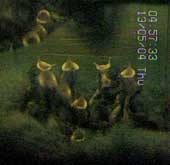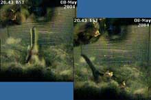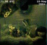 Tonight looks as though it will be another restless night for the mum, who will have a hard job keeping on top of the chicks from now on, judging by the way they are spread out in this image at 10.34pm. Click on the images to see larger versions |