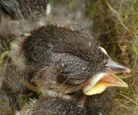 This is a close-up of the chick centre-right in the above picture, showing the rapid development of the feathers.