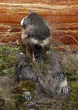 On her next visit another small grub was brought in, and this time she removed another of the night's sacs (with a few bits of straw attached).
