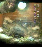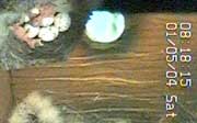 An update at 10.55am. I could see five chicks now, and as this webcam image shows, the nest cup is not very deep, so when a chick decides to stretch up in hopes of being fed, its head will appear in the main nest picture.