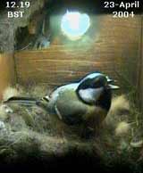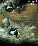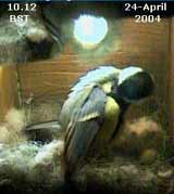 29 April - A thoroughly miserable day - damp, dismal, and with temperatures not reaching 9C all day after falling to under 7C first thing this morning. Our Great Tit's response to the conditions was to get up later, at 6.06am and to retire for the night at 6.19pm. Between those times she spent over 83% of the day in the box, going out 20 times for an average time of about 6 minutes.