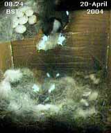 Go to latest entry..............................................Previous entry20 April - I haven't spent much time watching the box as I have been doing other jobs today, so I've only got a few details to record. The female started stirring around 5.08am and left the box at 5.48am. There was no sign of egg laying this morning, so it looks as though that stage is now at an end.