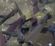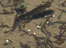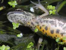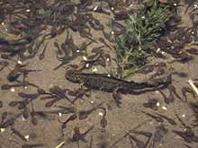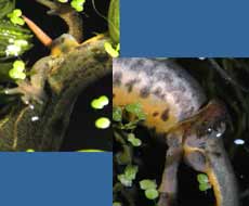 In this picture the newt is even walking on them as it chooses its next meal! Click on images to see larger versions