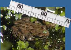 Before coming back into the house I had another look at the shallow end, and disturbed something that swam with great haste into the cover of the pond edge. A careful look revealed this little surprise - a tiny frog, no more than 15mm in length, and clearly one of last year's brood, although I didn't expect to see any this small out in the open at this time of the year.