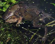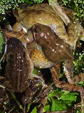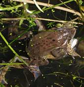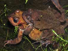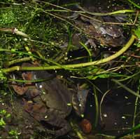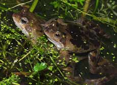 Go to last entry of the month....................Go to previous entry3 February - Things have remained quiet in the pond since my last diary entry. The quick cold spell last week produced some ice although it did not freeze over completely and the ice disappeared within two days. In contrast, after a very mild day the outside temperature at 9.30pm is still 12C! Frog numbers have still to reach anywhere near last year's numbers (20+) at this stage and I have just counted some 16 between the two ponds.