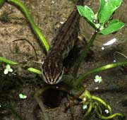 And a closer shot before it moved behind the cover of the pond plants to continue eating its meal.