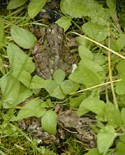 In the meantime, the frogs are now spending quite some time on the 'sunny side' of the pond, often in groups on the bank, usually half hidden in the grass or other plants. There are four of them in this picture, although the groups are often larger in number.