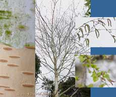 The buds on our tree are still tightly closed, and many of the branches have long, slender catkins (top right image). In contrast, the birch next door is already in leaf (lower right image) and has short catkins. While I believe the latter birch is a native tree, our Birch is a Himalayan Birch, and was bought very cheaply as a sickly specimen from our local garden centre a good few years ago although I can't remember when). Last month I photographed a Starling peeling of pieces of the tree's white bark. That is still going on today, and the left-hand image shows the new pink/orange bark that is revealed as the old, white layer, complete with its winter coat of algae, is peeled off. Over the next couple of months the colour will be lost and the new bark will become white.